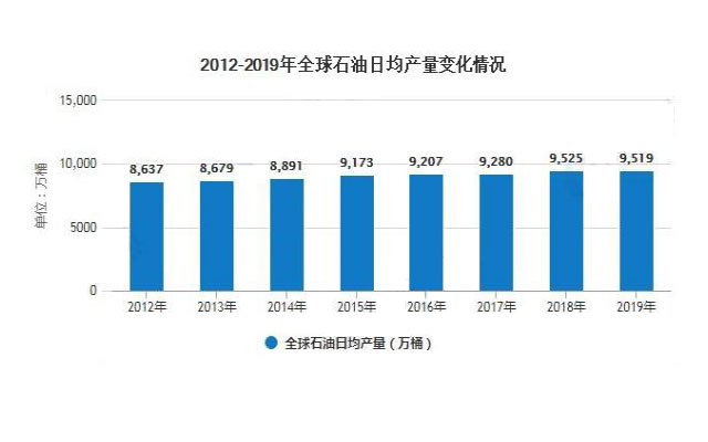 2012-2019年,全球石油日均产量整体上呈现逐年增长的变化趋势。2019年,全球石油产量略有下降,基本与2018年持平,但石油日均加工能力上升明显。整体的生产能力有所提高。